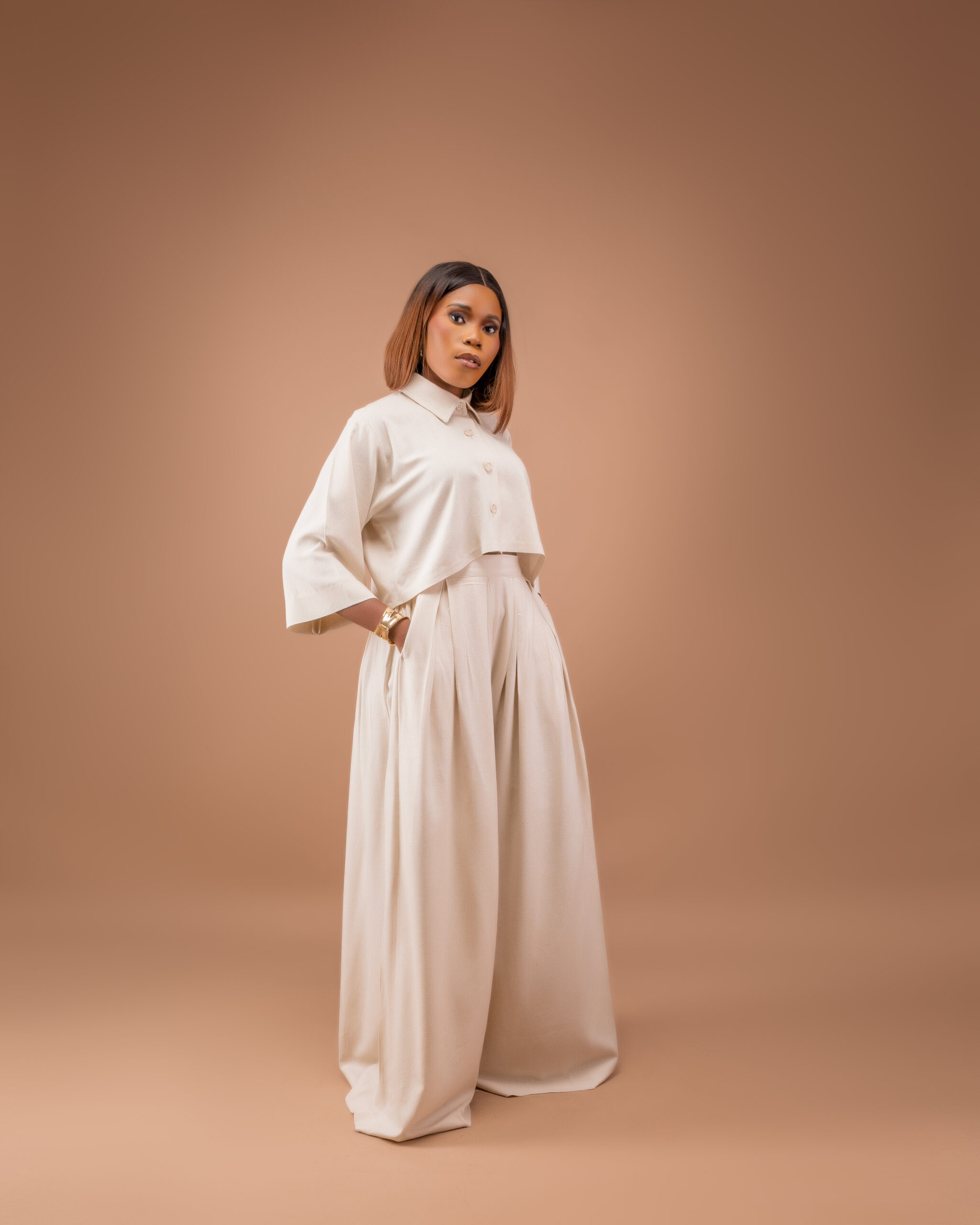 Designed for comfort without compromising style, The Ease Set features a button-down free shirt and wide-legged pants. Made from breathable linen, this set is perfect for warm-weather dressing while maintaining a clean, modern aesthetic.